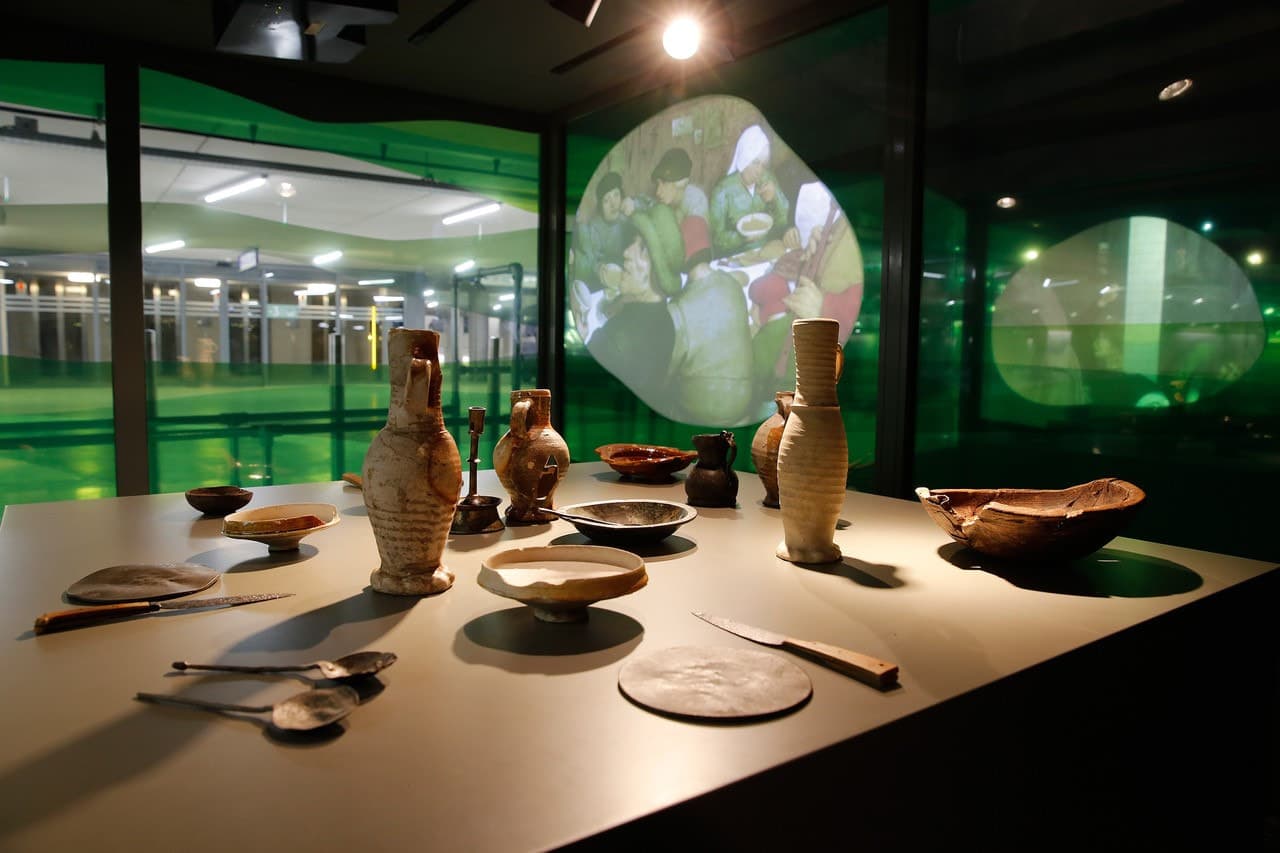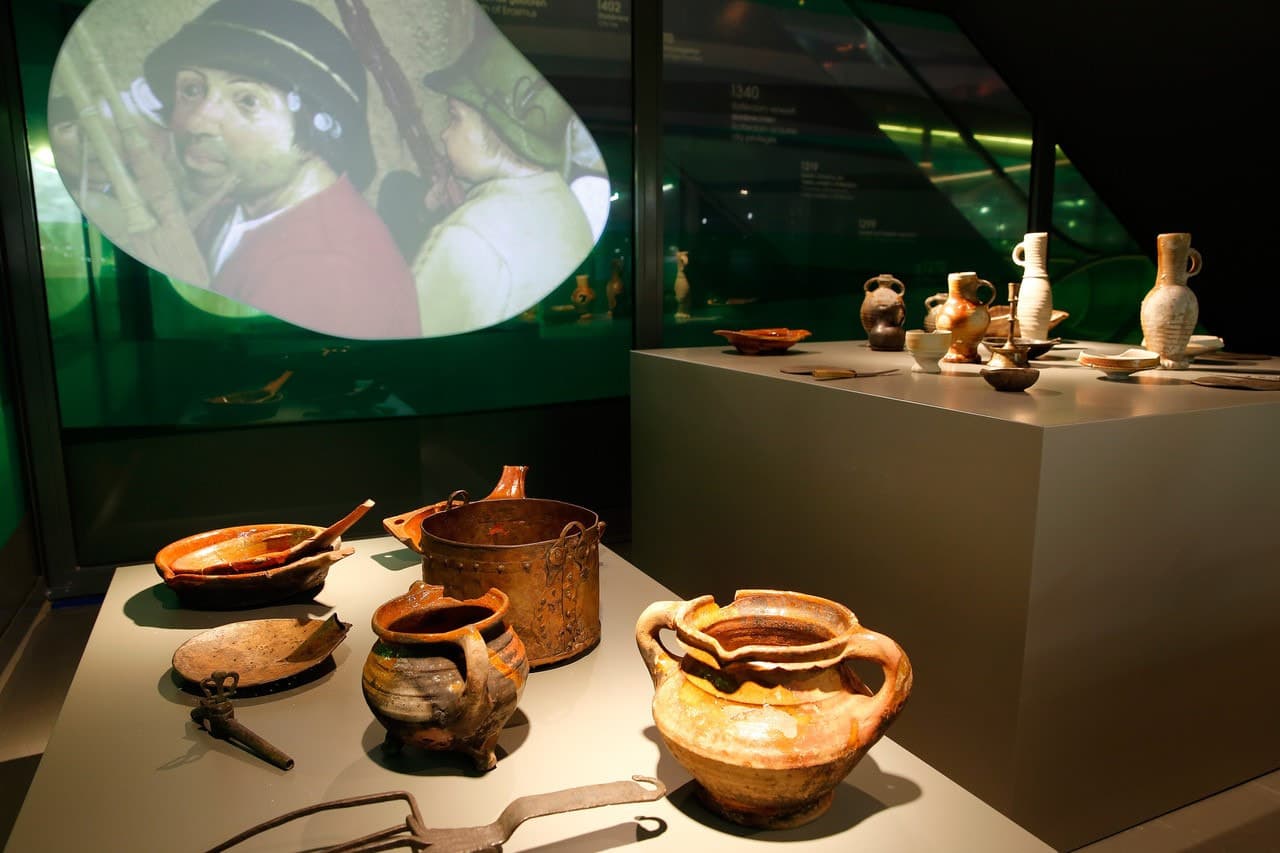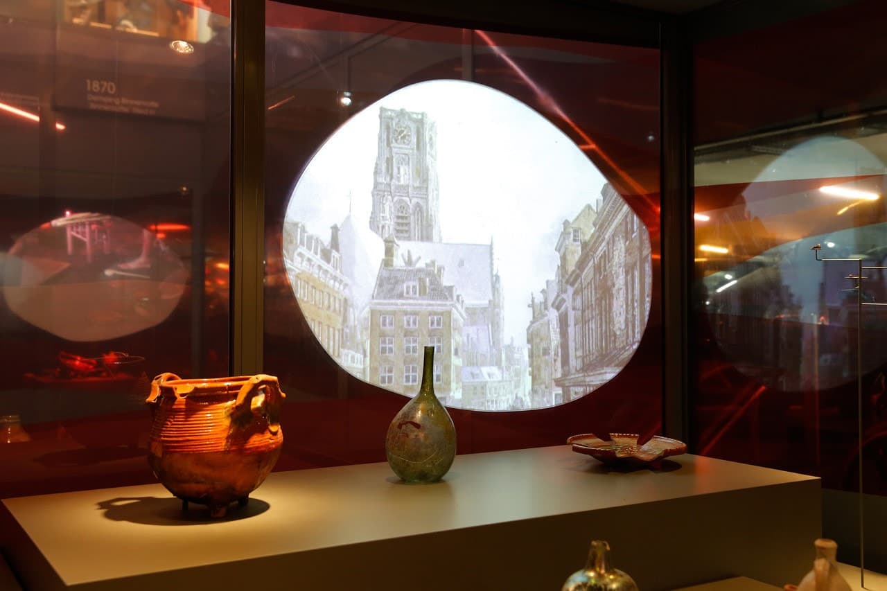 Dit stukje geschiedenis van de Maassstad is nu te zien in de Markthal. Daal vanaf de marktvloer met de roltrap af naar de ondergelegen verdiepingen en maak met de Tijdtrap een reis van 1.000 jaar in 15 meter! Langs de roltrappen vind je informatie over de verschillende tijden. En via de schuifdeuren van de parkeergarage kom je uit bij de vitrines waar de archeologische vondsten worden tentoongesteld.