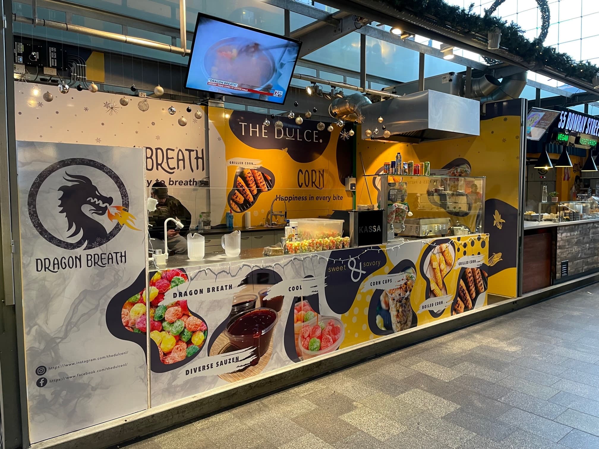 Bij The Dulce (voorheen bekend als Dragon Breath) vind je ook de trendy Dragon Breath balletjes! Dragon Breath komt oorspronkelijk uit Zuid-Korea en de Verenigde Staten maar is nu ook super populair in Nederland. De Dragon Breath zijn krokante maisballetje overgoten met gekoelde stikstof. De stikstof is ongeveer -170 graden, brrr lekker koud. Het maisballetje dip je in een lekkere aardbei, of kersen saus. Wanneer je het maisballetje eenmaal eet komt er allemaal rook uit je mond… net als bij een draak! Vandaar ook de naam van dit product, Dragon Breath. De Dragon Breath is een erg uniek product en het is een beleving die iedereen moet meemaken.