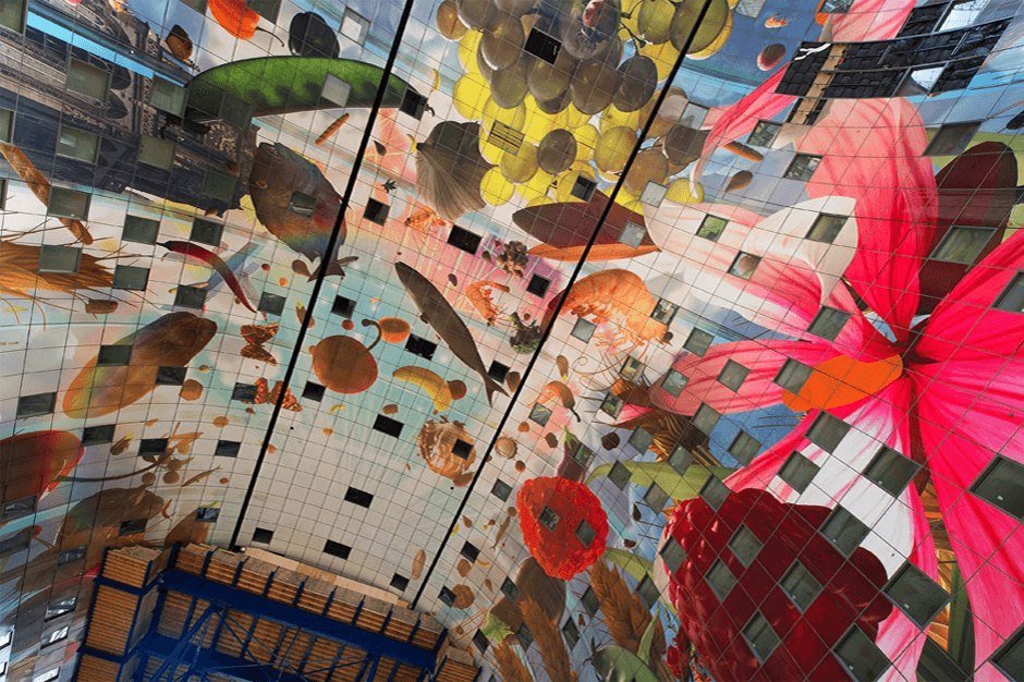 Come October, the massive arch of the Markthal, whose interior displays 3D food photographs, becomes the countryâs first indoor foodhall.